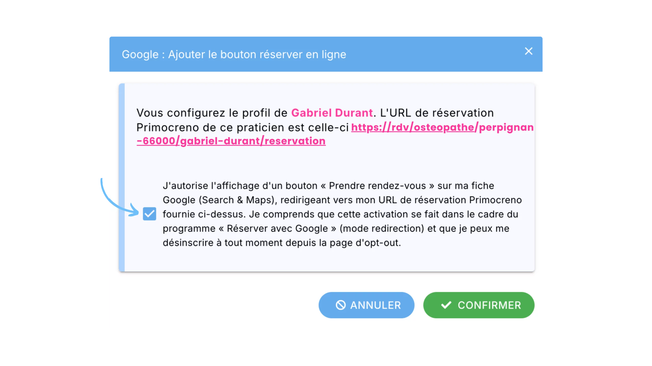 Le bouton « Réserver en ligne » sur Google est désormais compatible avec Mon Cabinet Libéral & Primocreno