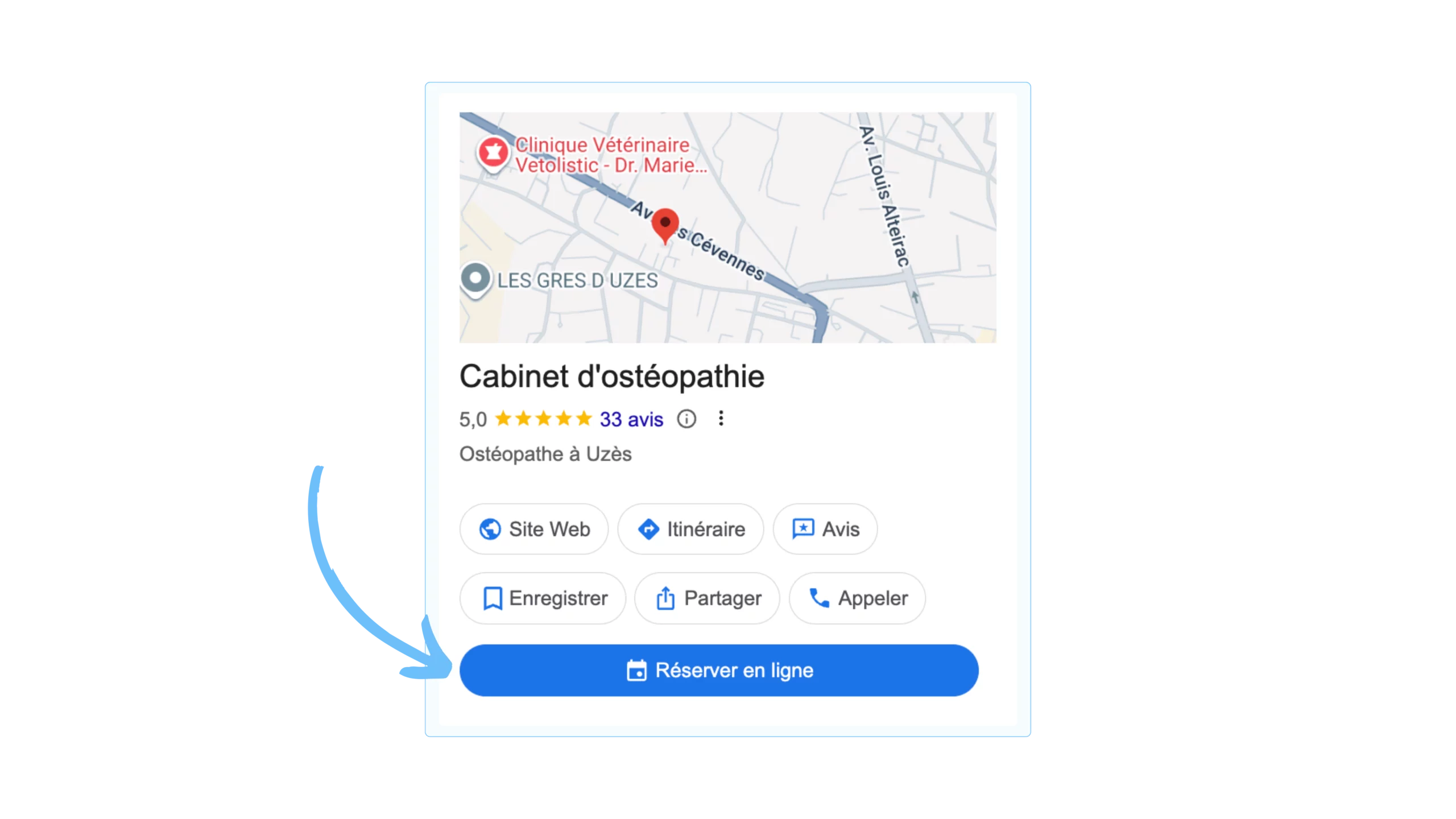 - le bouton « Réserver en ligne » apparaît sur votre fiche Google